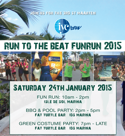It’s time to break out those gym sneakers and get ready for IYC Crew’s 3rd Annual Run to the Beat Funrun on Saturday, January 24, from 10 a.m.–2 p.m. Reward your hard work after with a BBQ and pool party, from 2–5 p.m. at Fat Turtle Bar. Stick around until 7 p.m. for the Green Costume Party. Prizes will be awarded for crew running the most kms and for best crew, best costume, best individual and more. Even better is that all money goes to the Red Cross of St. Maarten to rebuild schools and help the families and children affected by Hurricane Gonzalo. For each km run, $2 will be donated to charity.